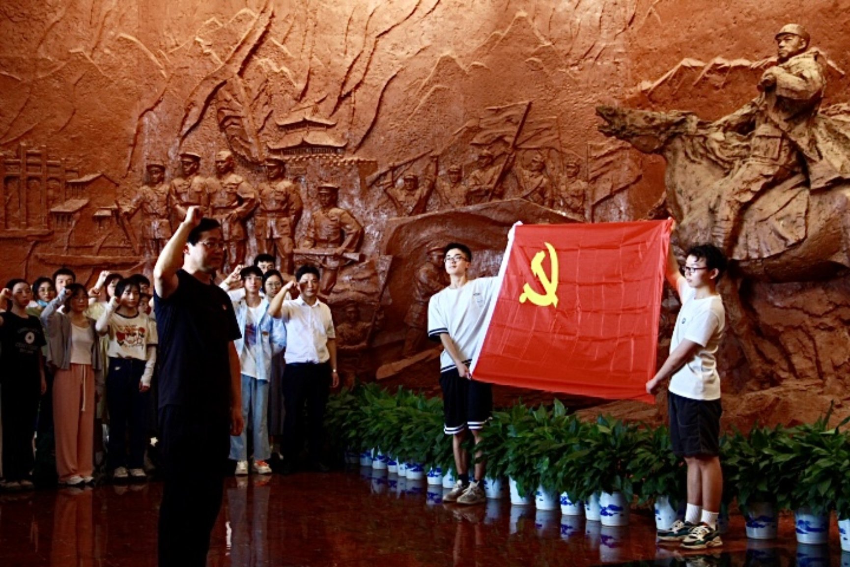 随后进入彭德怀纪念馆,由党委书记曾志东带领全体员工党员,于党旗旁重温入党誓词,接受党性洗礼。面对彭德怀元帅和解放军战士们的浮雕,口中的誓词愈发坚定,宣誓从来都不只是一种形式,是新党员在入党时的庄严承诺,是全体党员必须遵守的行为准则。光荣而神圣的宣誓过后,大家依序参观彭德怀纪念馆、彭德怀之墓、彭德怀故居等,深入了解了彭德怀元帅波澜壮阔的一生,切身体悟了老一辈革命家艰苦奋斗、百折不挠的伟大革命精神与为人民奉献终身的伟大共产主义精神。