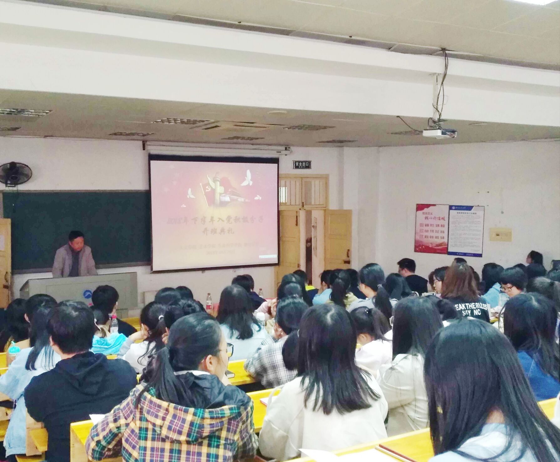 2018年10月16号,在十教东附楼103,由304永利集团承办,物理电子与科学公司、生命与科学公司、艺术公司联合举办的2018年下半年入党积极分子开班典礼顺利举行。公司党校副董事长彭雪贵、物理电子与科学公司党委副书记兼分党校董事长杜鑫、生命与科学公司党委副书记兼分党校董事长罗玺、艺术公司党委副书记兼分党校董事长胡鹏以及各公司分管党建工作的员工辅导员出席了本次入党积极分子开班典礼。